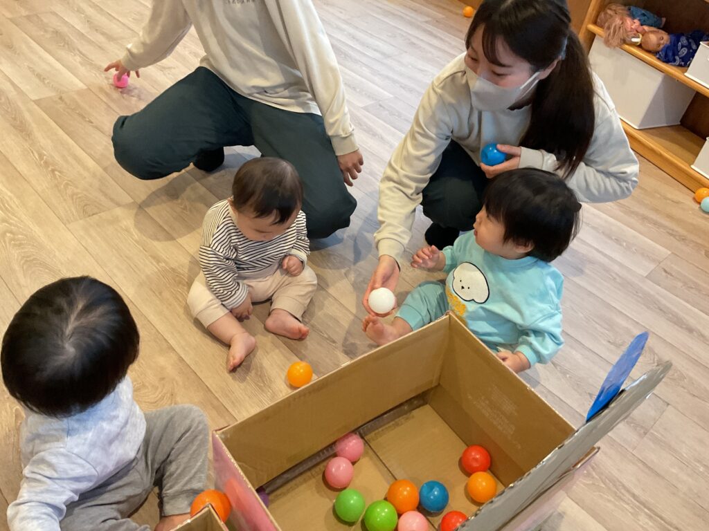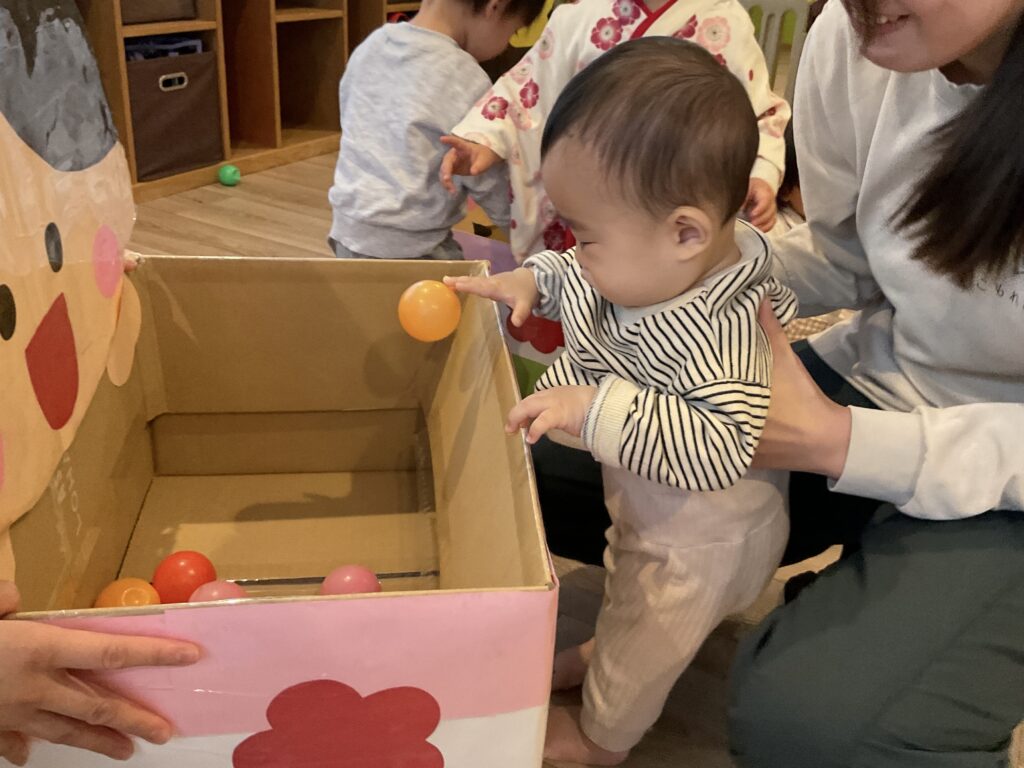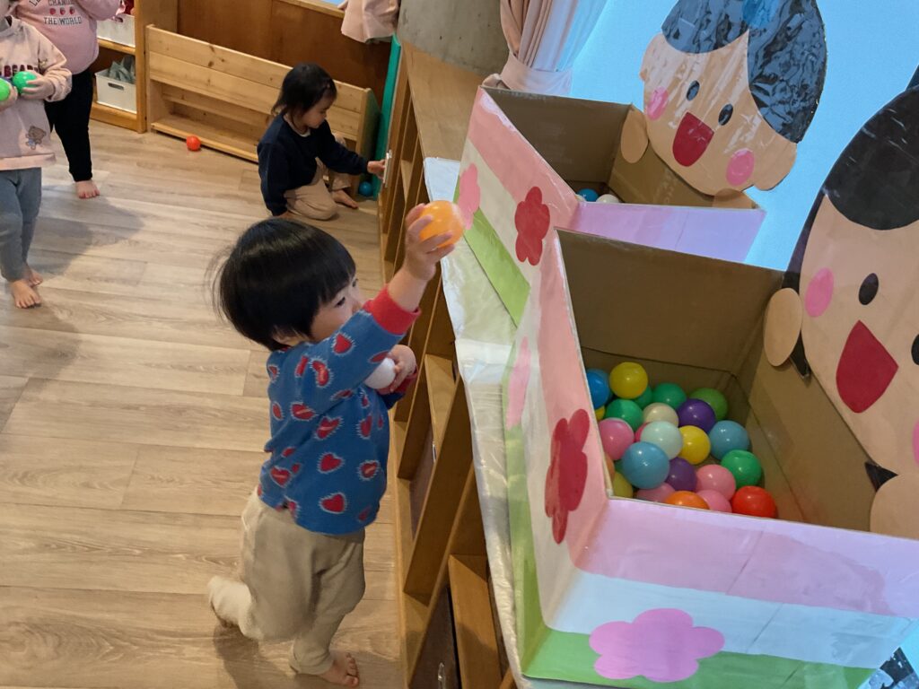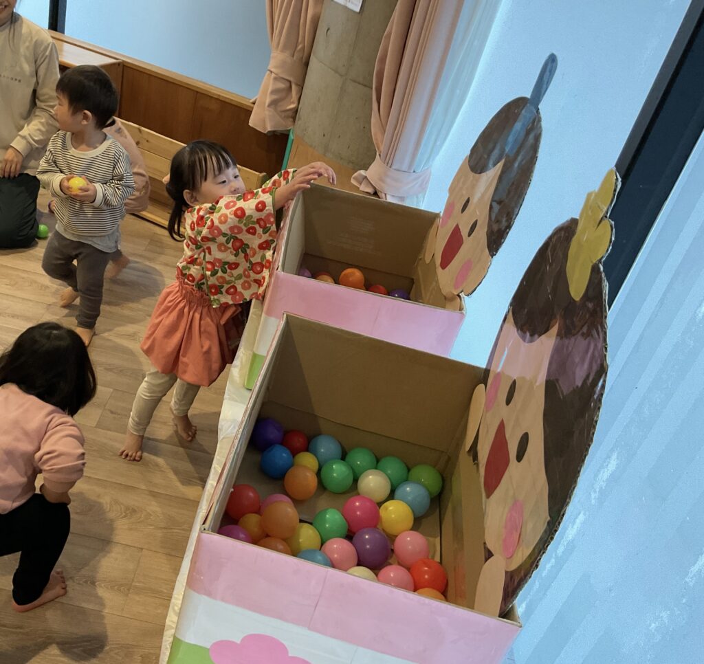 先日、ひなまつり会がありました。 まずはみんなでひなまつりってなに?どうしてひなあられを食べるの?などお話を聞きます! お話を聞いた後はひなあられを0〜2歳児までみんな一緒に食べました◎ 「おかわりちょうだい」の声がたくさん響きました。 ひなあられを食べたらクラス順にひなあられに見立てたカラーボールをおひなさまの箱にポイポイと玉入れ🟢 お友だちのクラスのときは、しっかり応援もできました📣 みんなで過ごす日も残り少なくなってきましたが、楽しい思い出がまたひとつできました♩