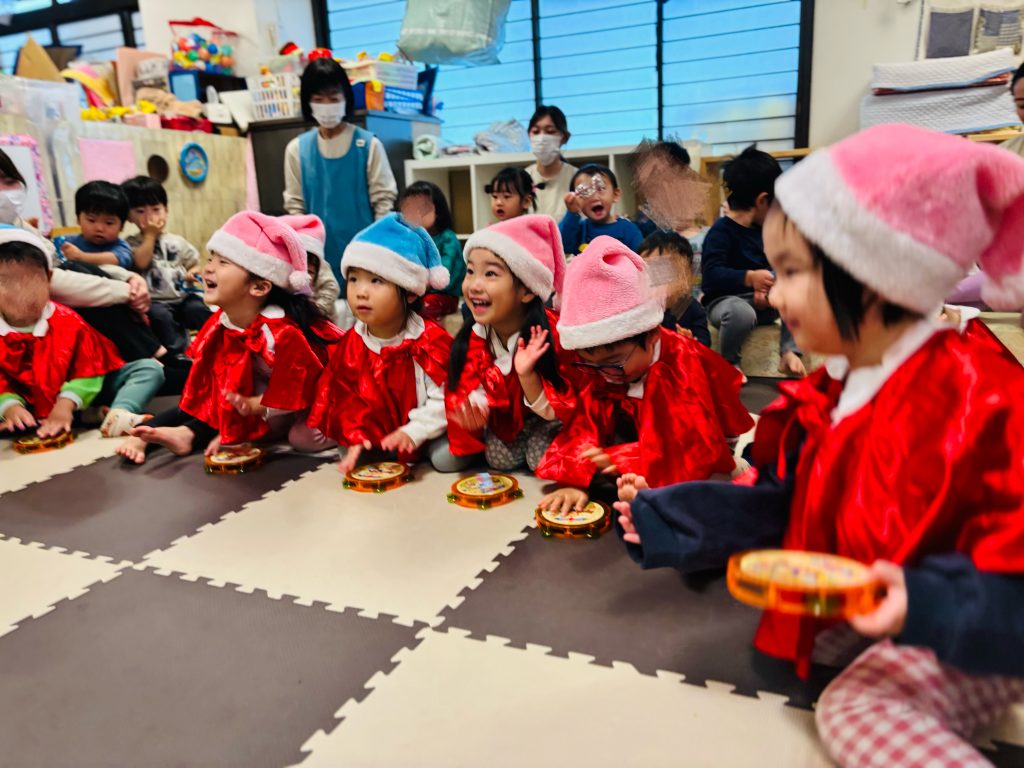 次は大森山王園で毎週行っているリトミックを元にクリスマスのお歌を楽器を使ってみんなで楽しみました✨♬🎶
